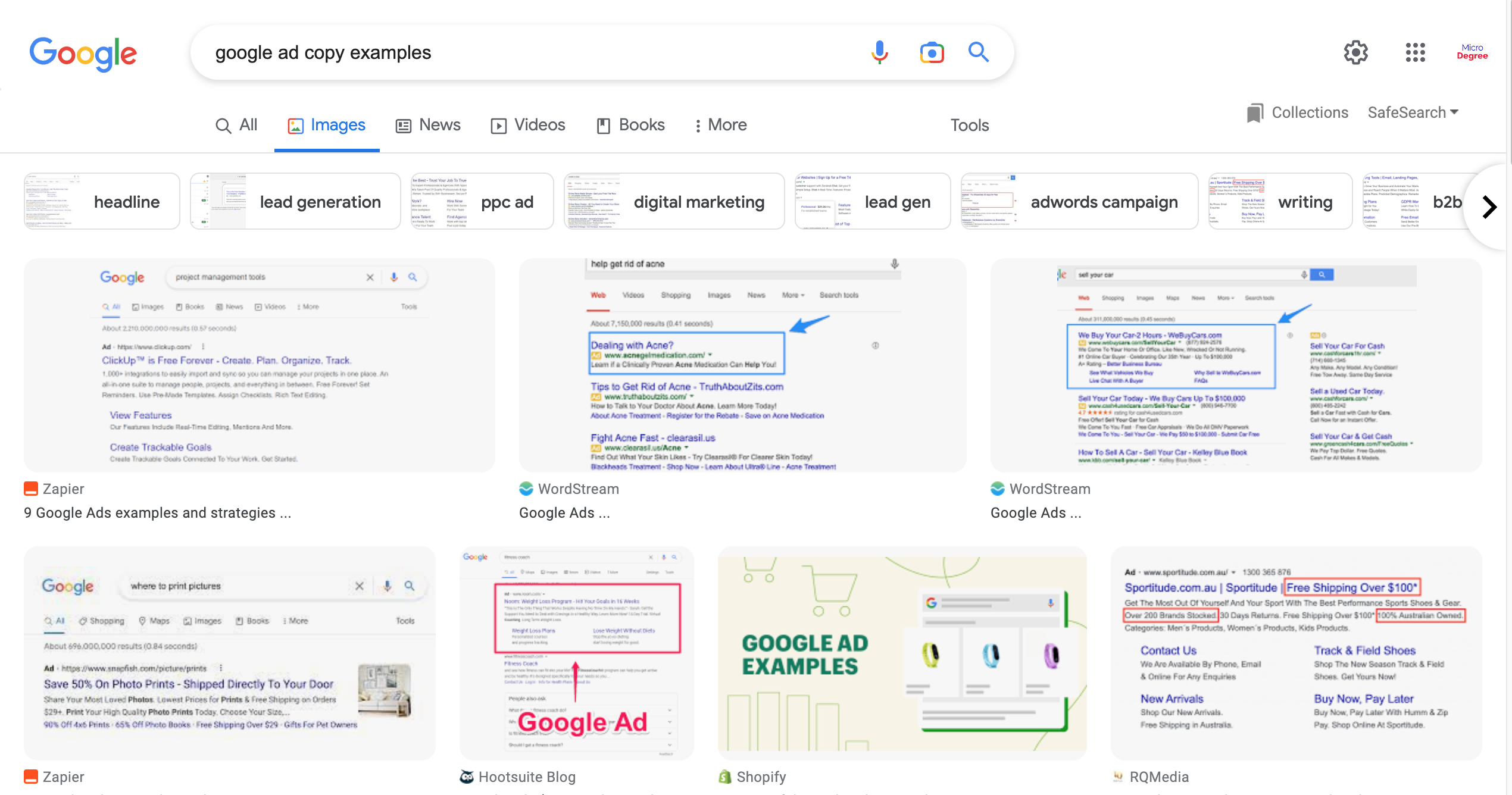 Write an Ad copy for Google Ad for your College Website. Reference below.